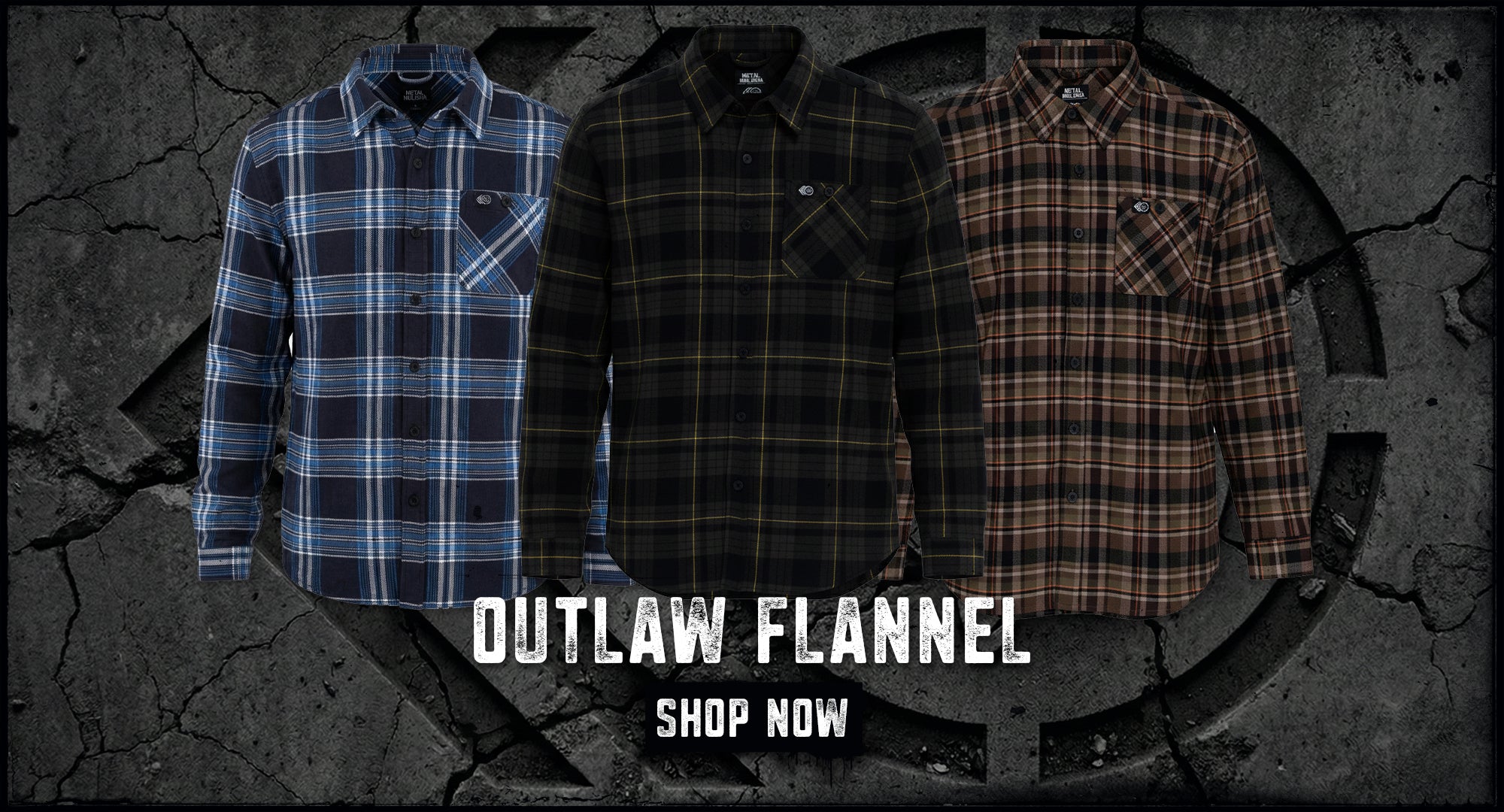 The Metal Mulisha Outlaw Flannel in Blue and Black plaid pattern is made with a...