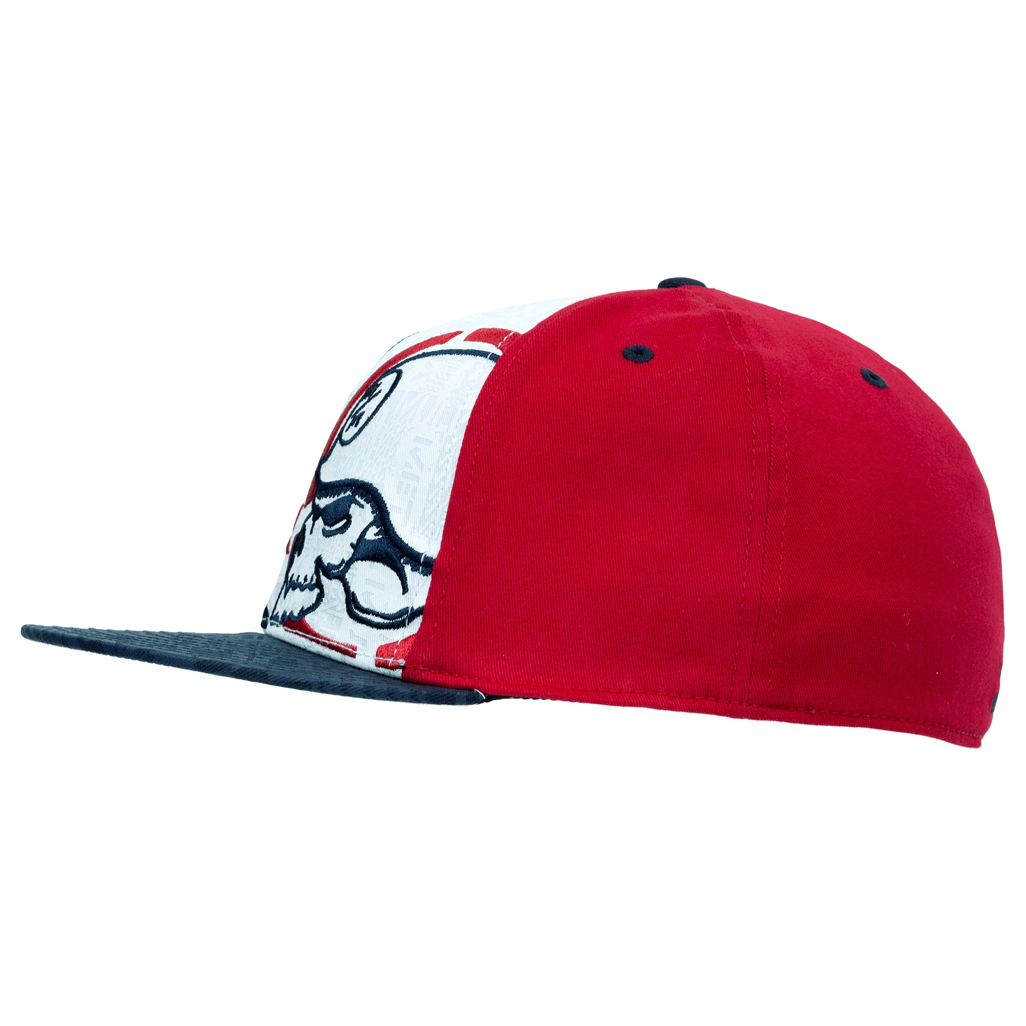 The Metal Mulisha Ghost 2 Flex Hat is an update of our best selling Ghost Hat. This Red, White and Blue Ghost 2 Flex Hat features a tonal allover screenprint on the front 2 panels and top of bill, a large Metal Mulisha embroidery in Red and Blue cross the front 2 panels, small Metal Mulisha logo embroidery on back center in Blue, allover under bill screenprint, custom printed internal seam tape. Naturally a flat bill, but easily curved.