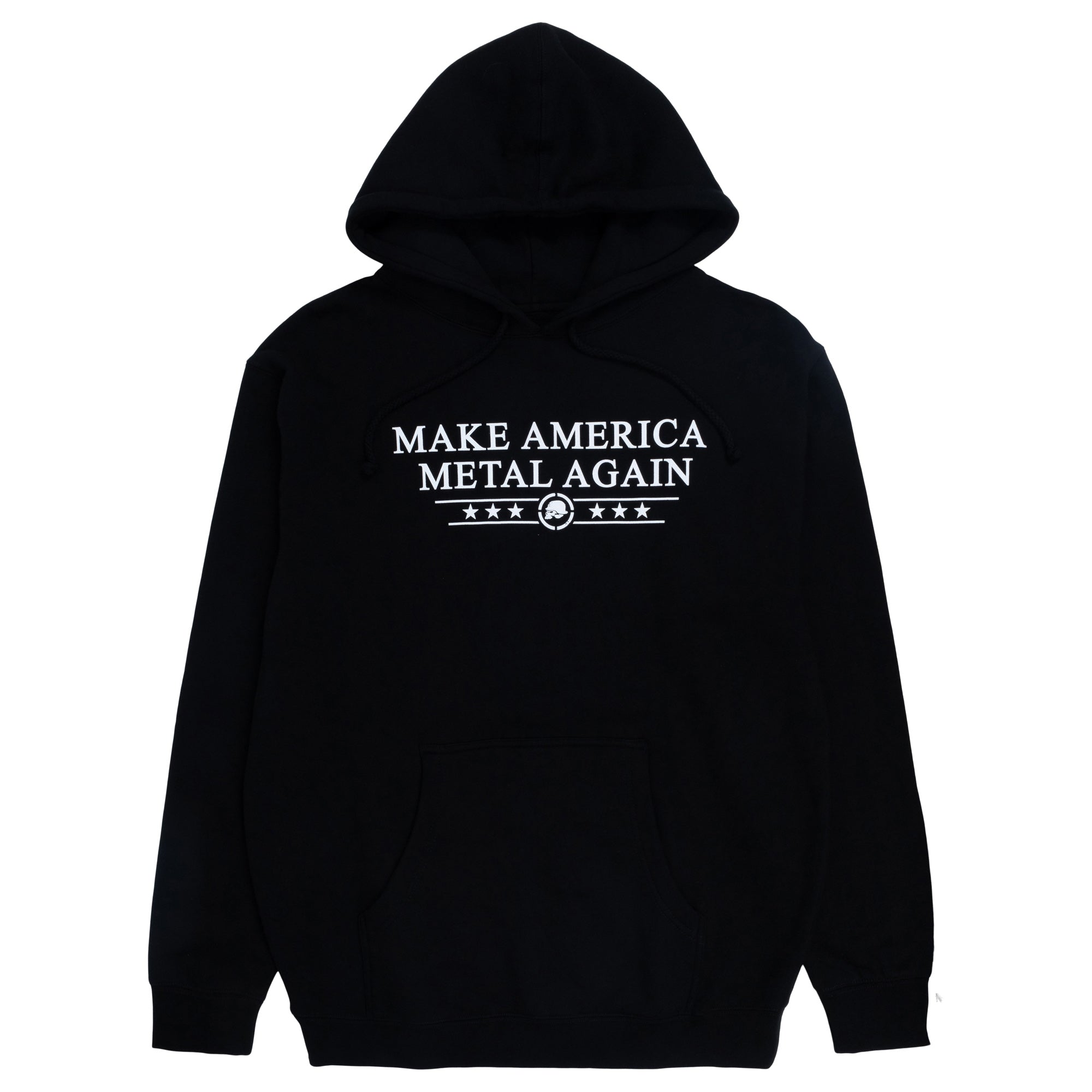 The Metal Mulisha Elected MAMA Heavy Hoodie in Black features a large front Make America Metal Again screenprint. One of the heavier weight fleece we offer, it's built sturdy yet soft and comfortable and has a relaxed fit that is true to size.