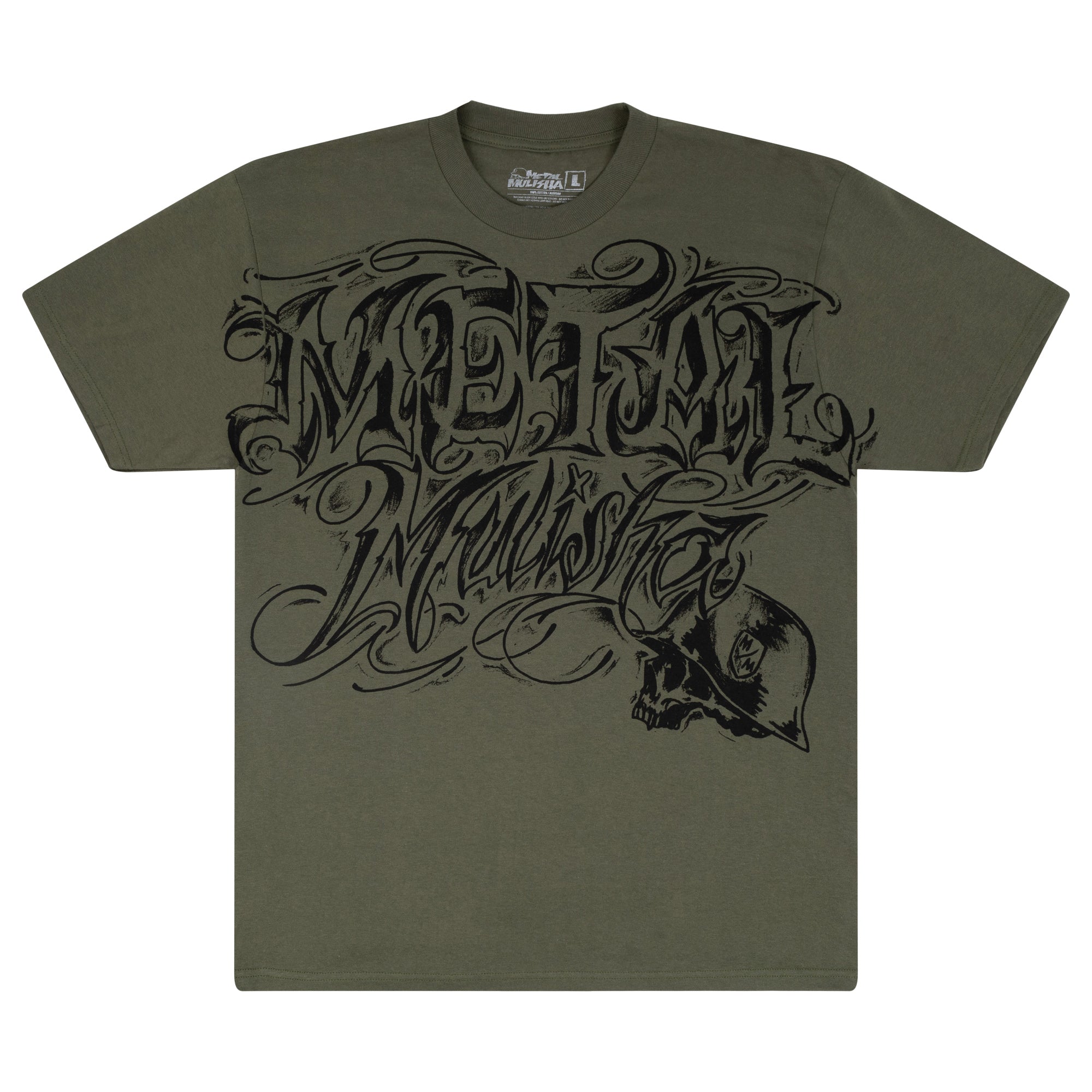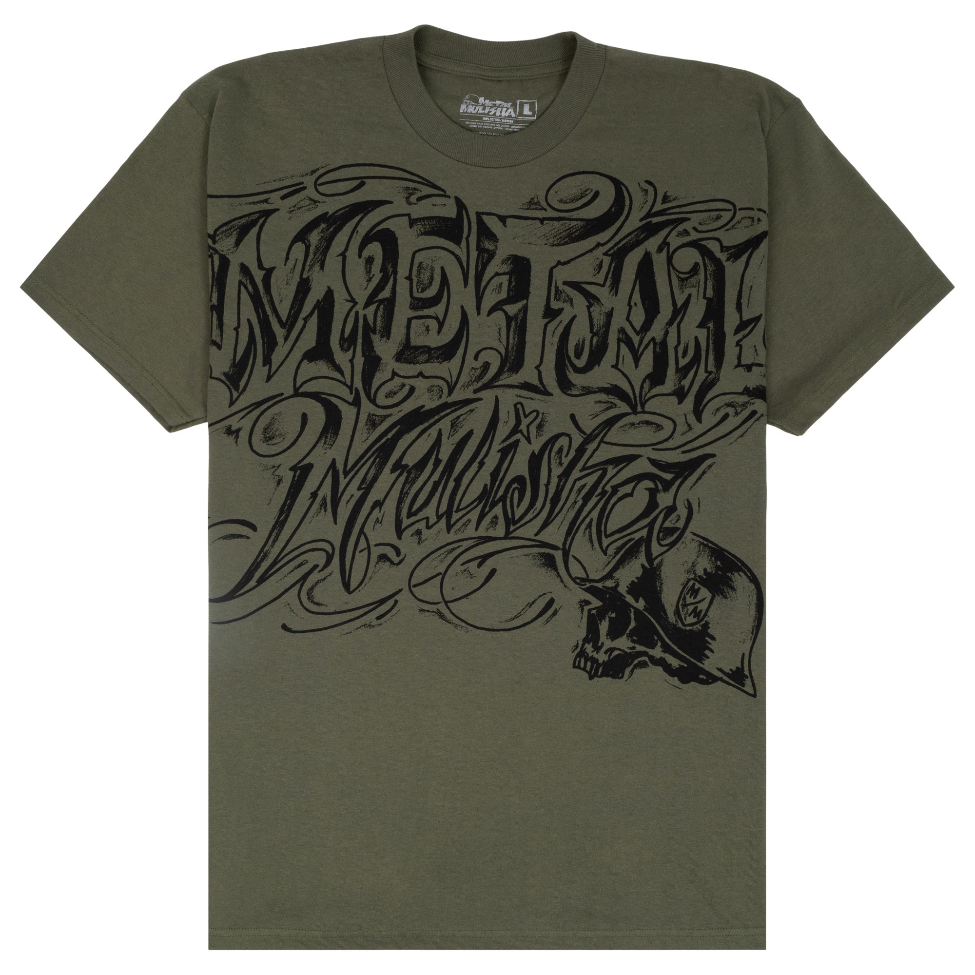 Metal Mulisha Clasick Tee in Military Green features a large oversized MM print on the front of the tee in Black.
