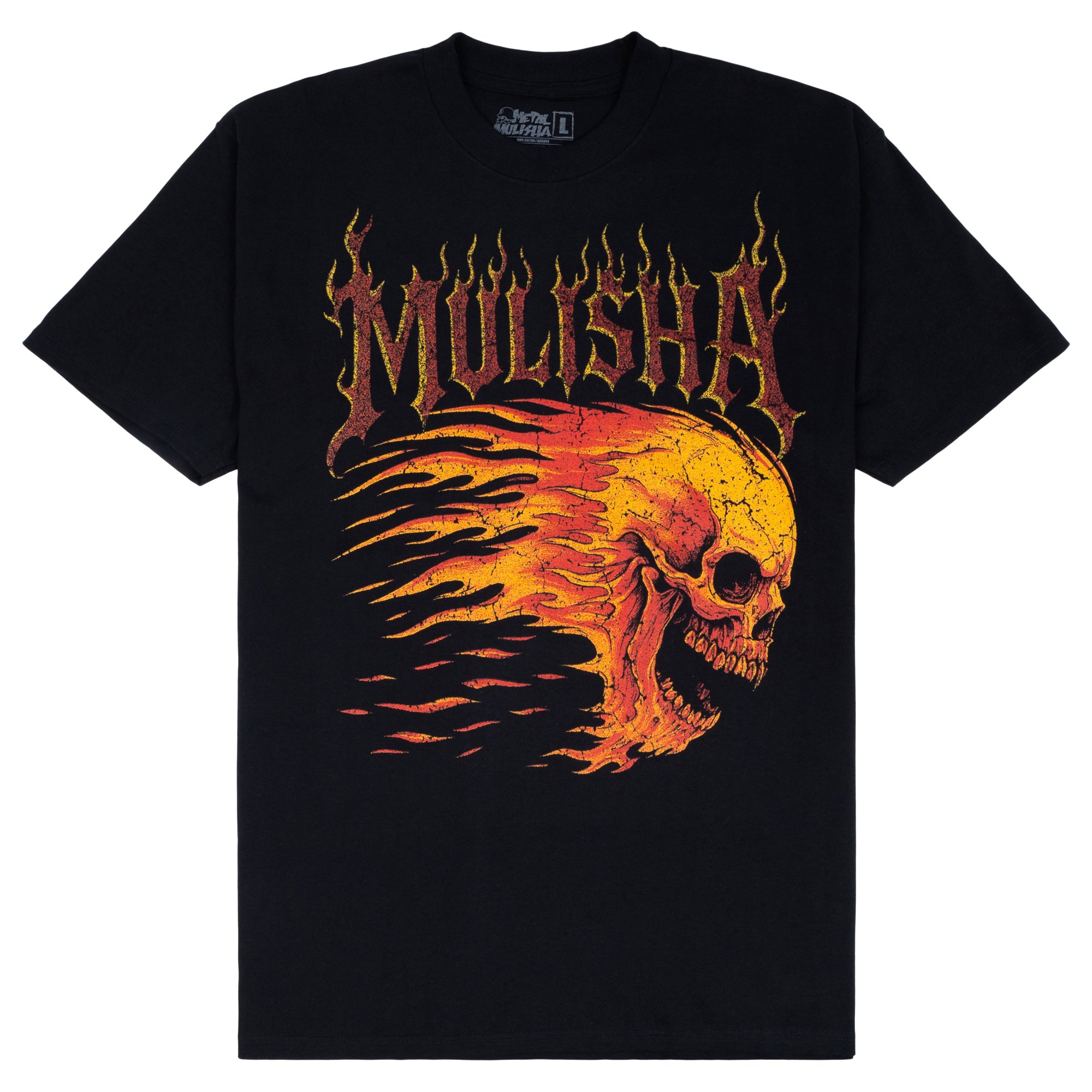 Metal Mulisha Skream Tee in Black features a large front chest hit in Red and Orange.