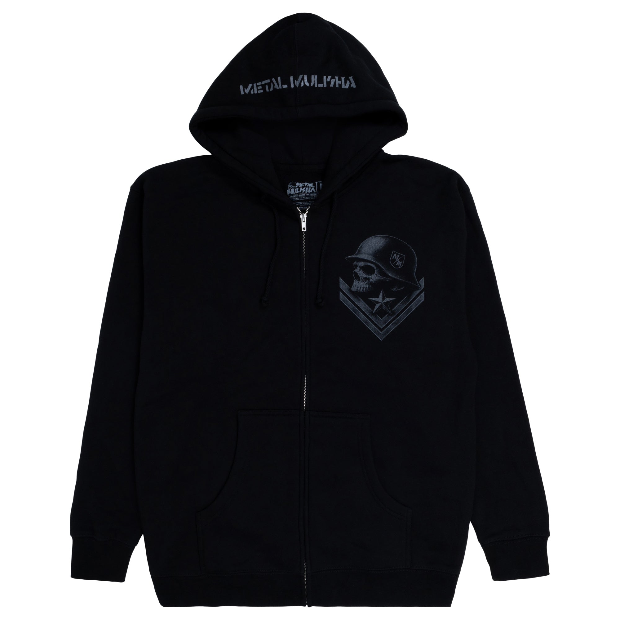 The Strategy Heavyweight Zip Hoodie in Black. This Hoodie features a large custom screen print on the back, front left chest hit, and Metal Mulisha print on the hood. The heaviest weight fleece we offer, it's built like a tank yet soft and comfortable and has a generous relaxed fit that is true to size.