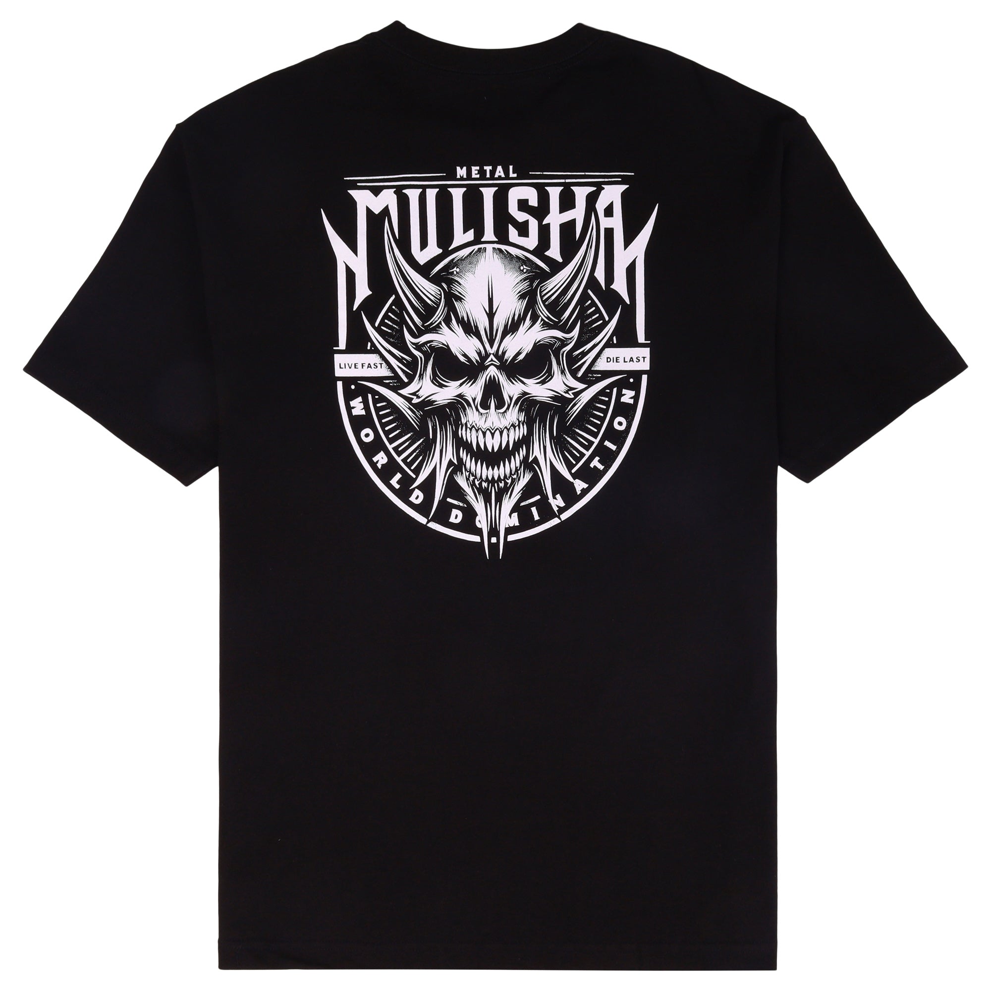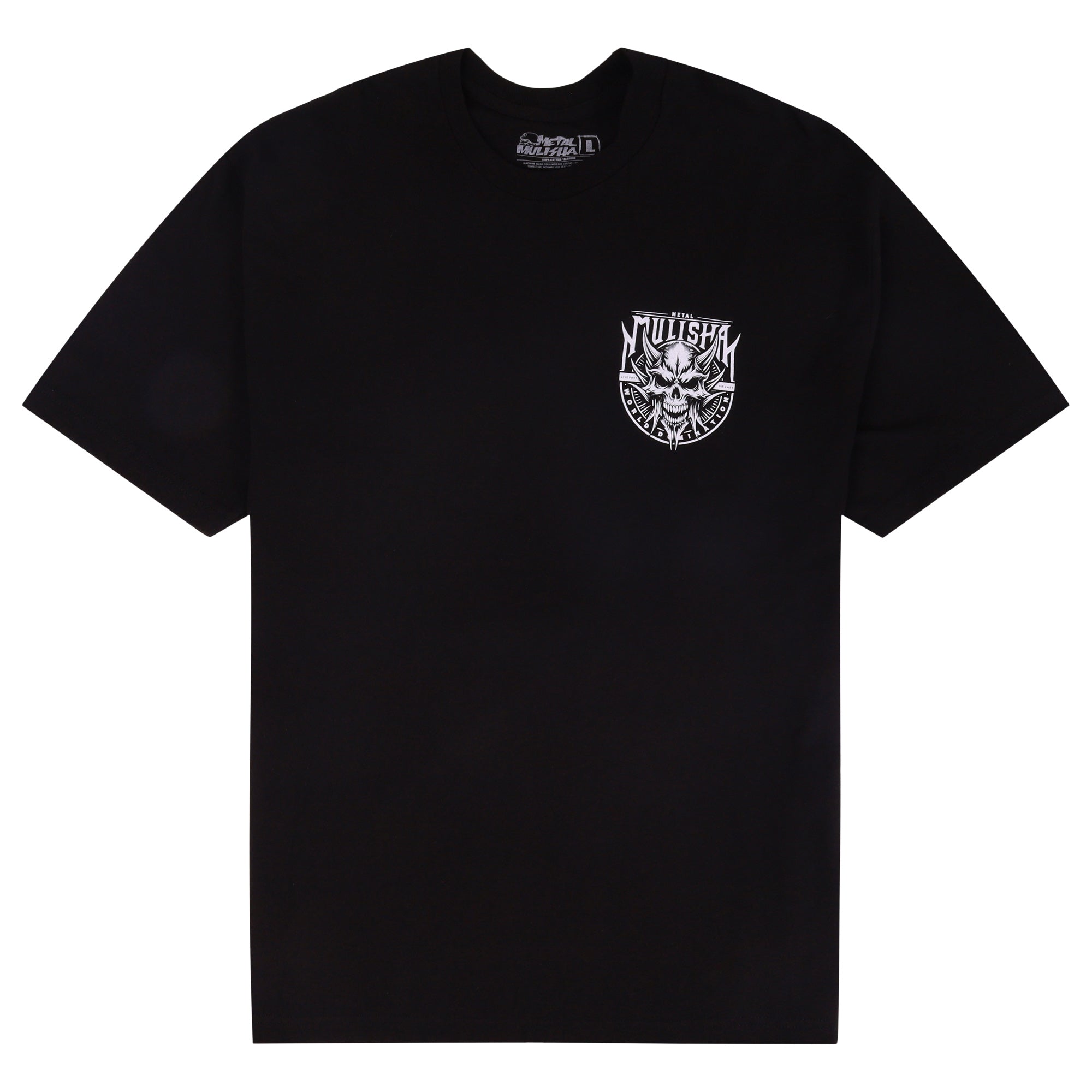 The Brutality Tee in Black features a small left front hit and a large back hit in White.