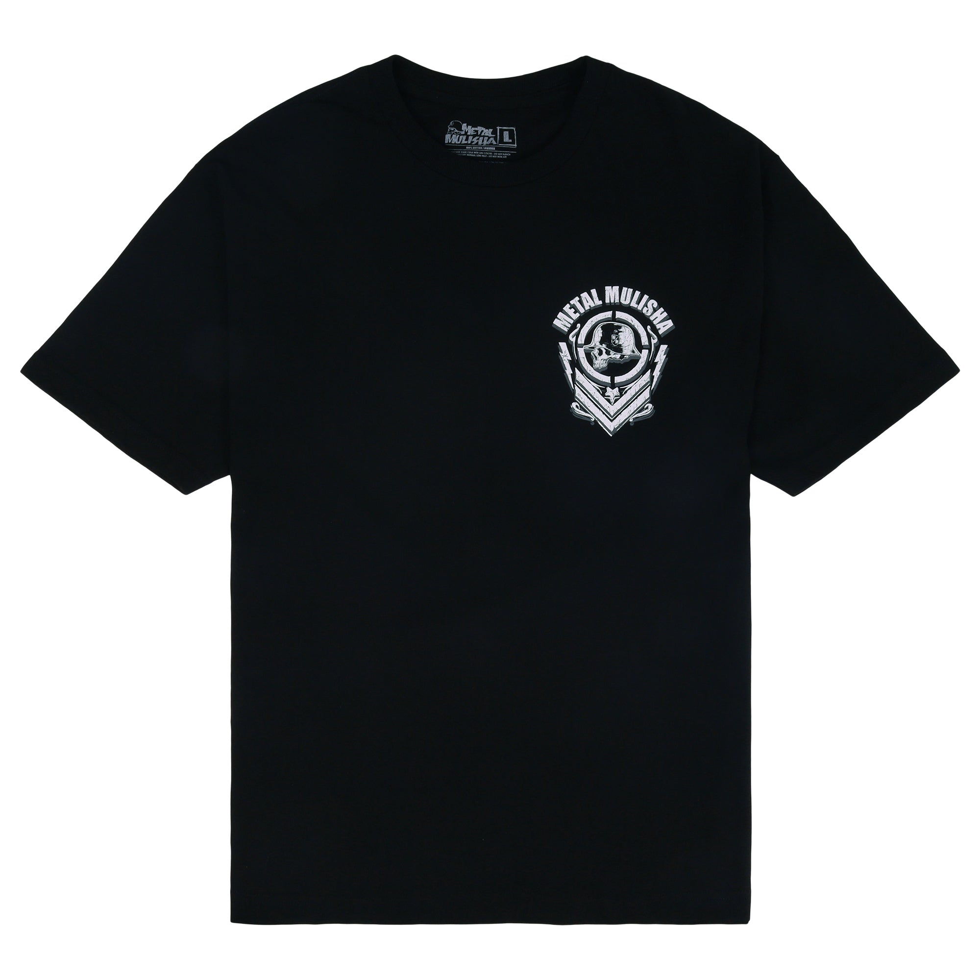 The Locker Tee in Black features a small front left hit and a large back hit in White.