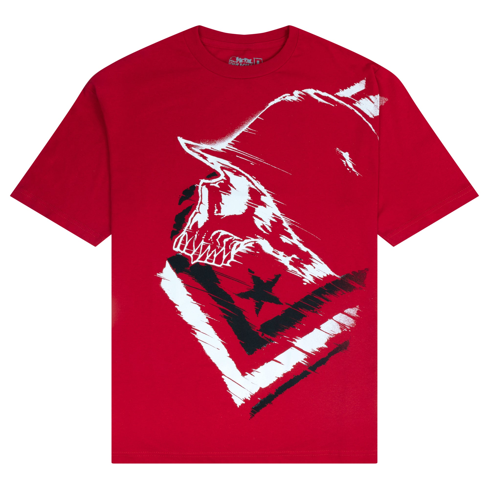 The Winded Tee in Red features a large front hit in Black and White.