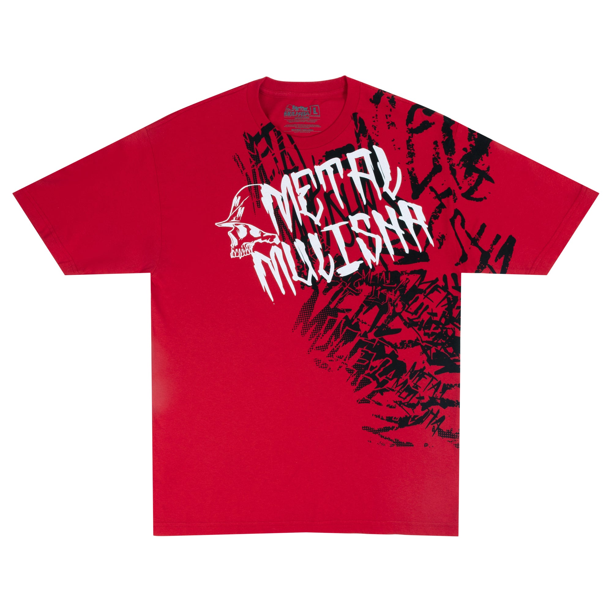 The Unfair Tee in Red features a massive front hit in Black and White.