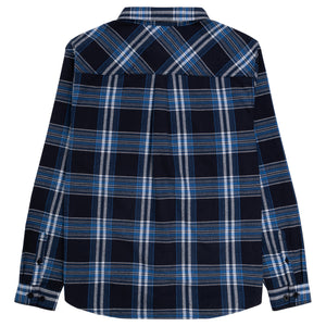 The Metal Mulisha Outlaw Flannel in Blue and Black plaid pattern is made with a great relaxed fit and heavy duty yet soft material. This is your new go-to shirt for work or going out after quittin' time.