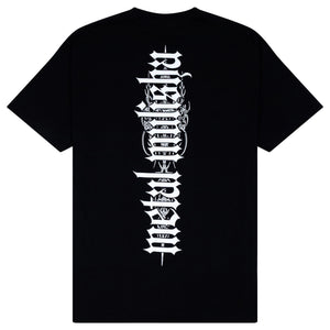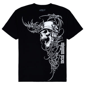 Metal Mulisha War Paint 2 Tee in Black features a large oversized tribal style M/M skull white print on the front and Metal Mulisha down the back.