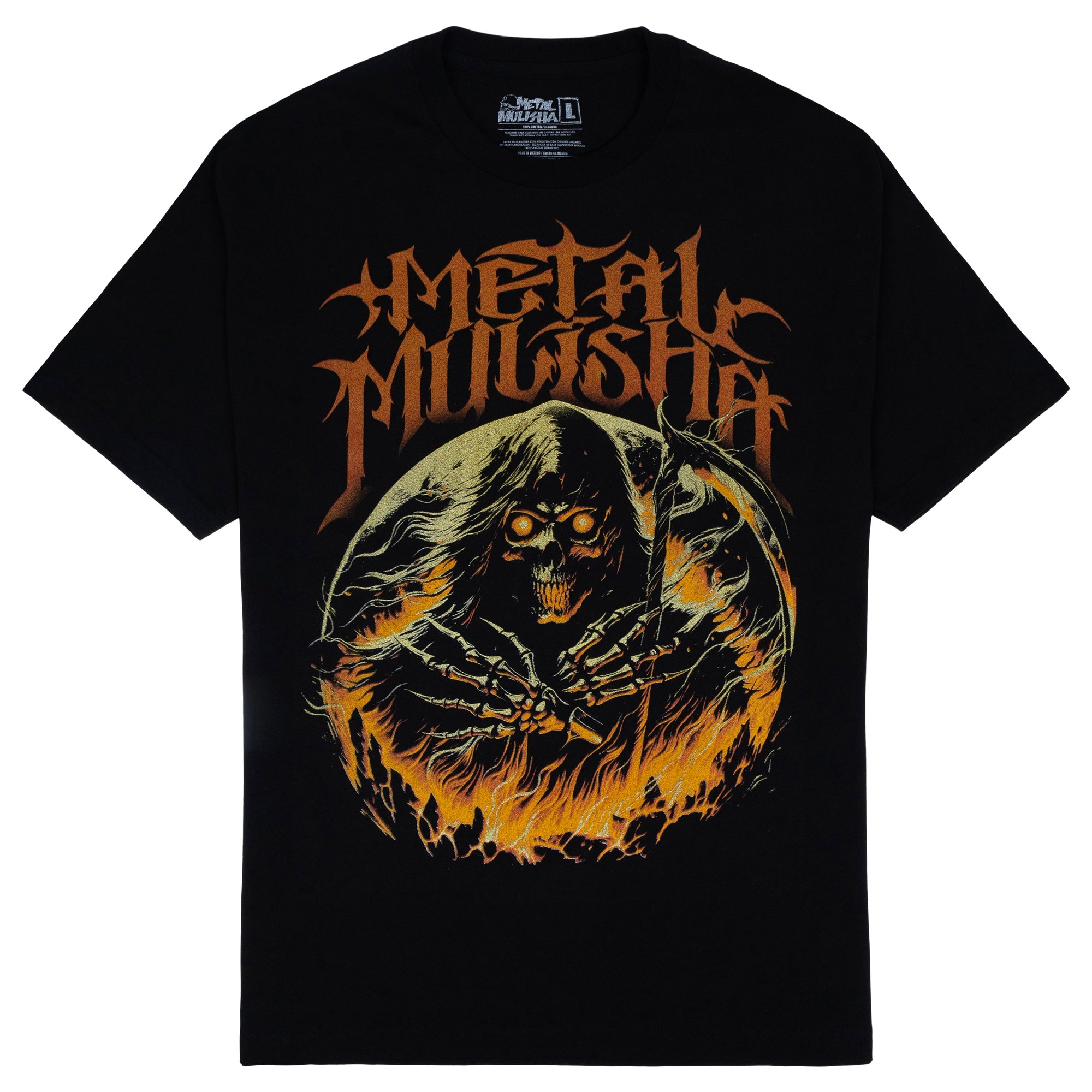The Trial by Fire Tee in Black features a large front hit in Orange, Red and Black.