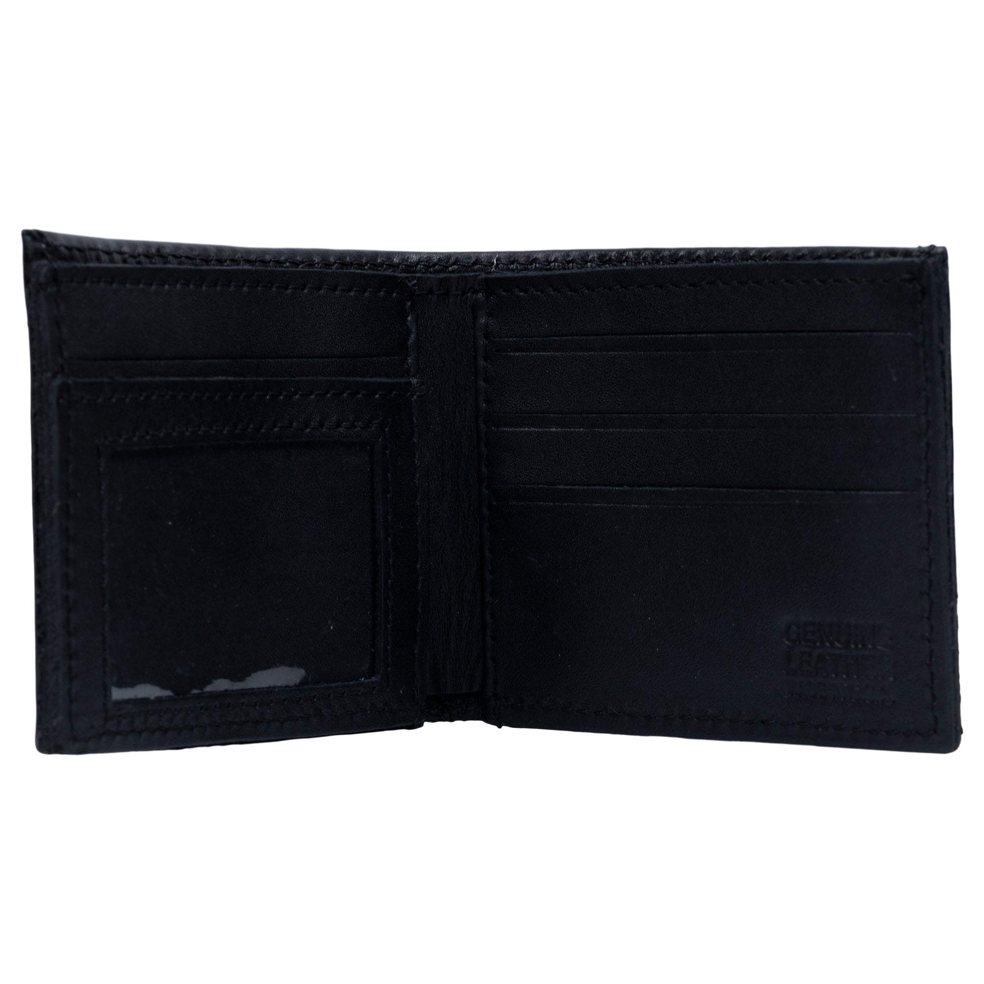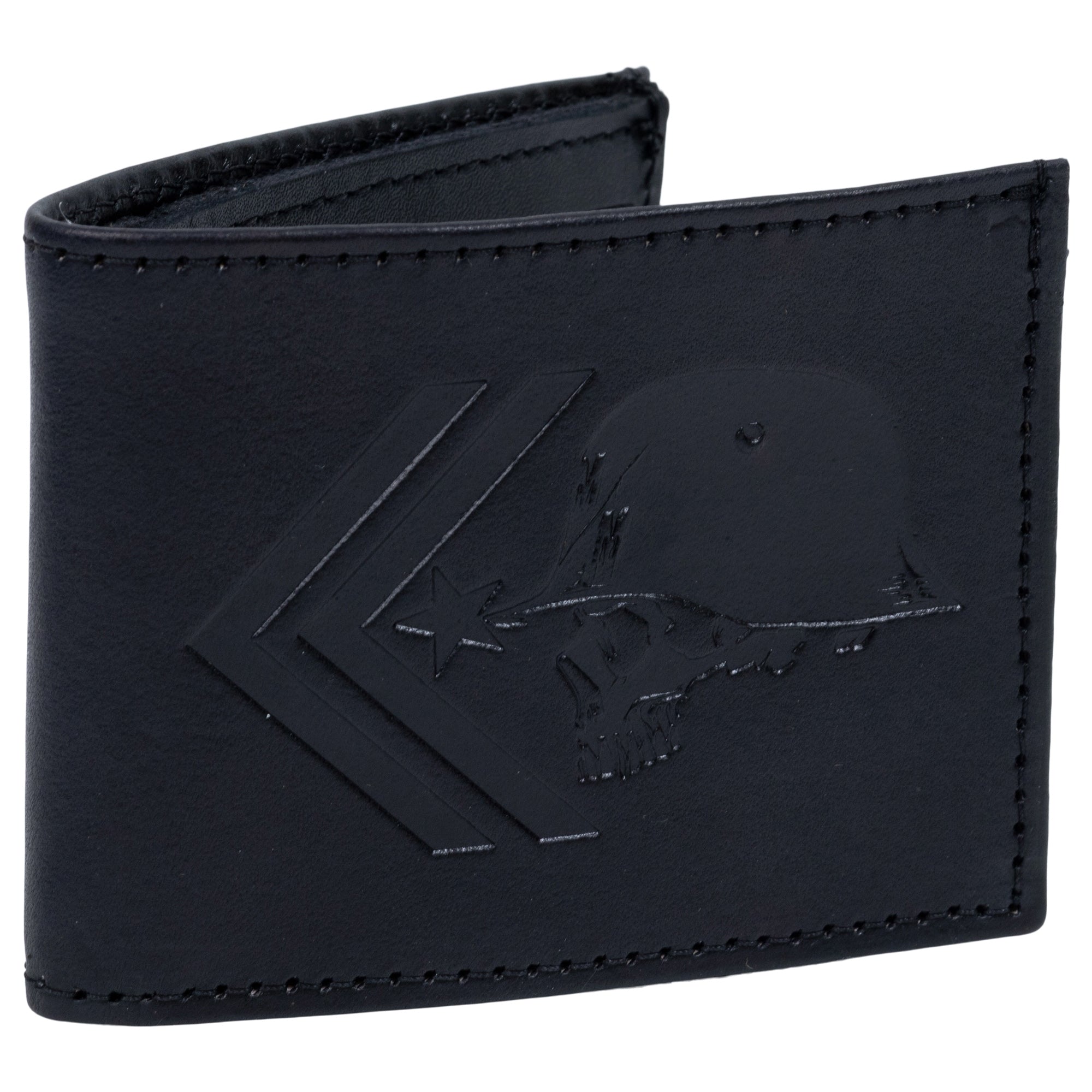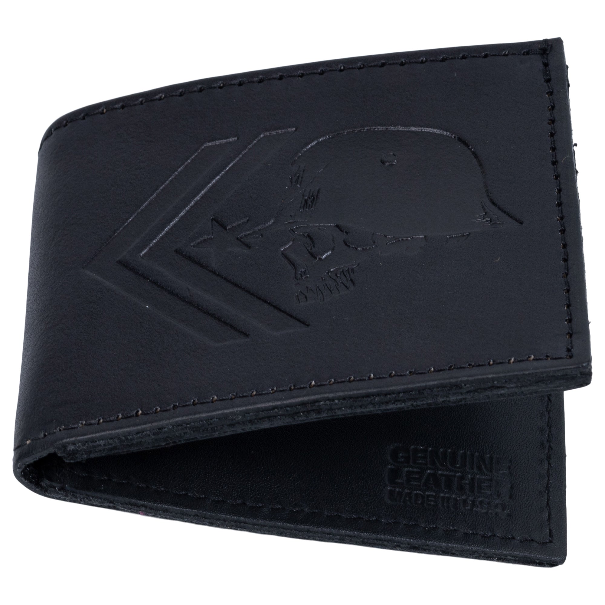 Your everyday Bifold Metal Mulisha Made in USA Leather Wallet. This wallet features a deboss of the Metal Mulisha skull on the front flap, three card slots, a clear ID window, and a full length bill pocket. This genuine leather wallet was handcrafted and Made in the USA.